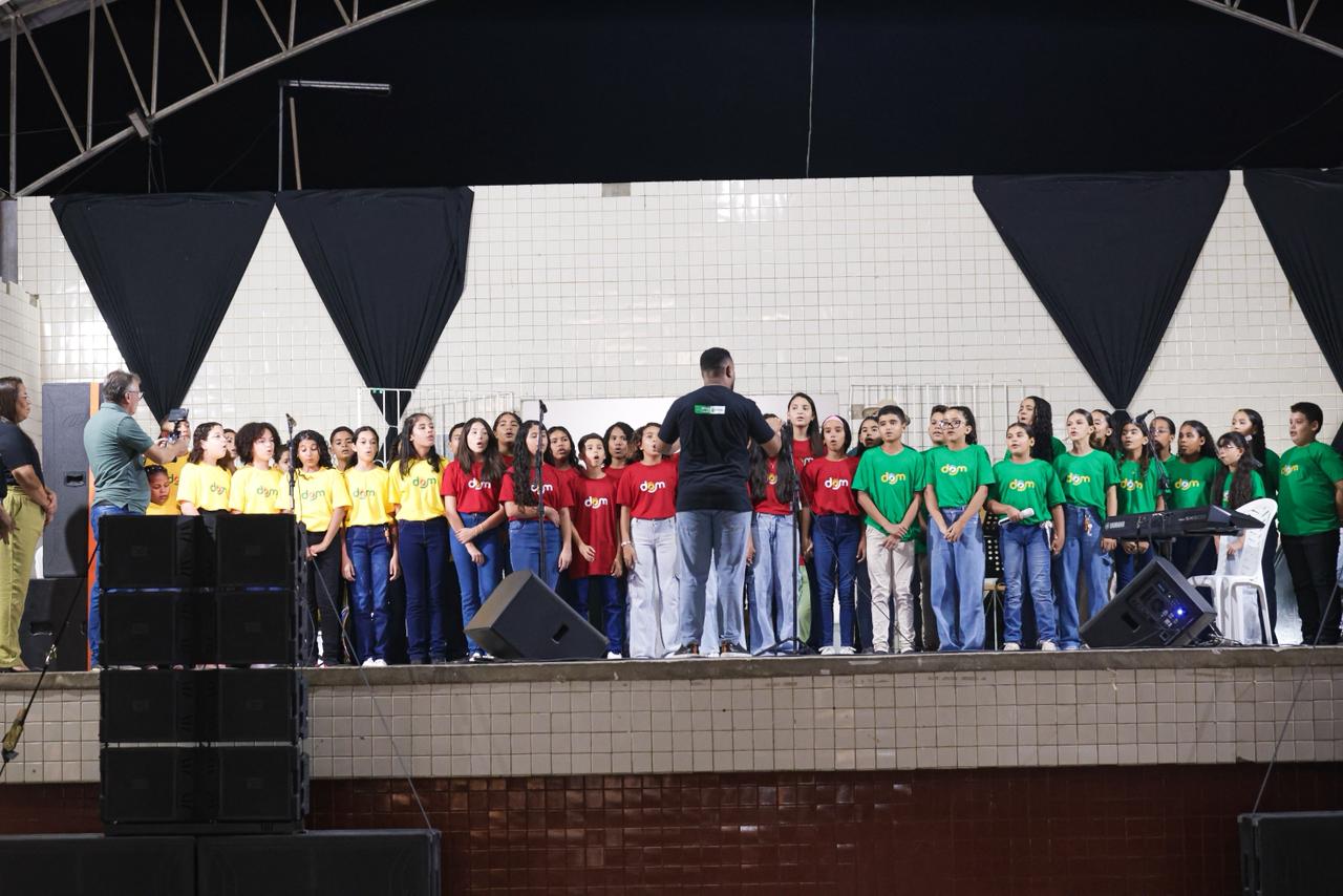 Outro momento de grande significado foi a apresentação do Coral Dom, formado por alunos de três turmas do 6º ano da Escola Maurino Rodrigues de Andrade – CNEC. Mais do que uma apresentação musical, o coral representa o investimento do município na formação cultural, educativa e cidadã dos jovens, utilizando a música como ferramenta de aprendizado, disciplina e inclusão social.